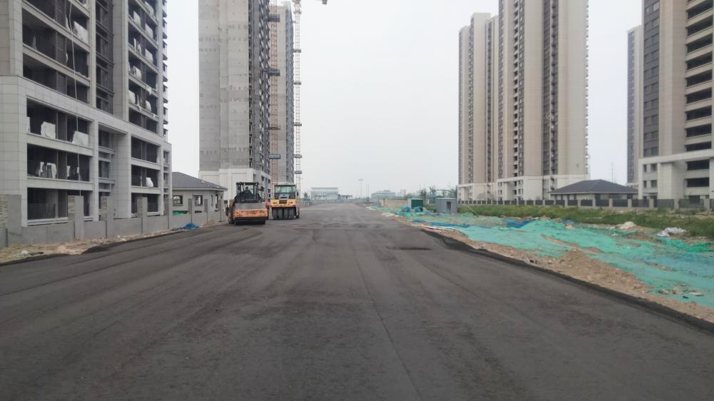 4月27日,合心河路(嵩山路-规划路)水泥稳定碎石层摊铺完成。