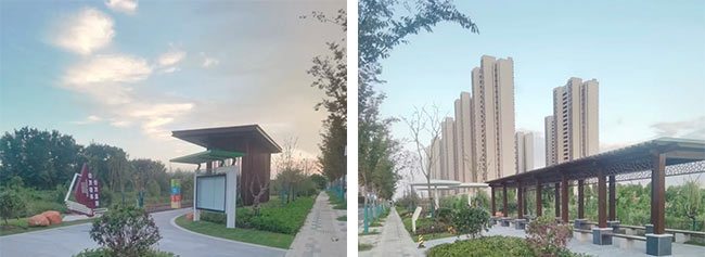 合心河路景观绿化提升工程位于长江路学校南侧,充分利用边角地、闲置地区域铺设草坪、种植苗木、增设凉亭等,实现“见缝插绿”,打造方便、小巧的适合游憩的绿化活动场地。