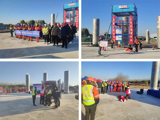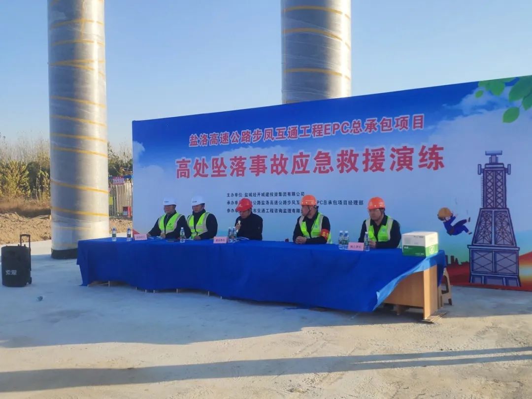 为持续树牢安全红线意识,普及安全生产知识,提升施工现场管理和一线作业人员安全素养和防护意识,有效保障施工领域安全生产形势平稳,11月28日下午,盐城开云手机平台在盐洛高速步凤互通项目现场开展高处坠落事故应急救援演练活动。集团工程条线全体人员及各在建项目项目经理、总监参加活动。