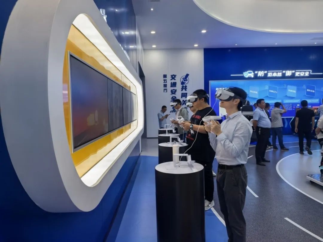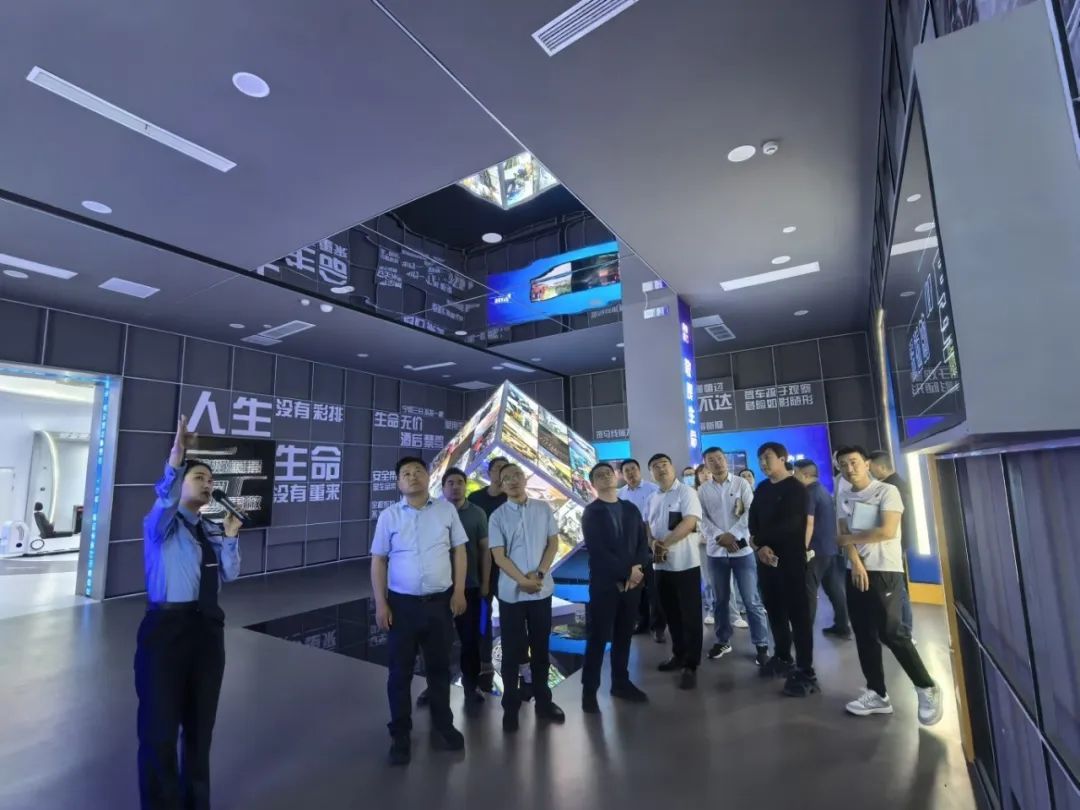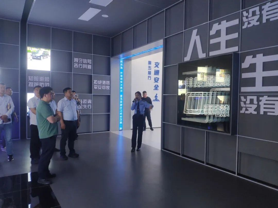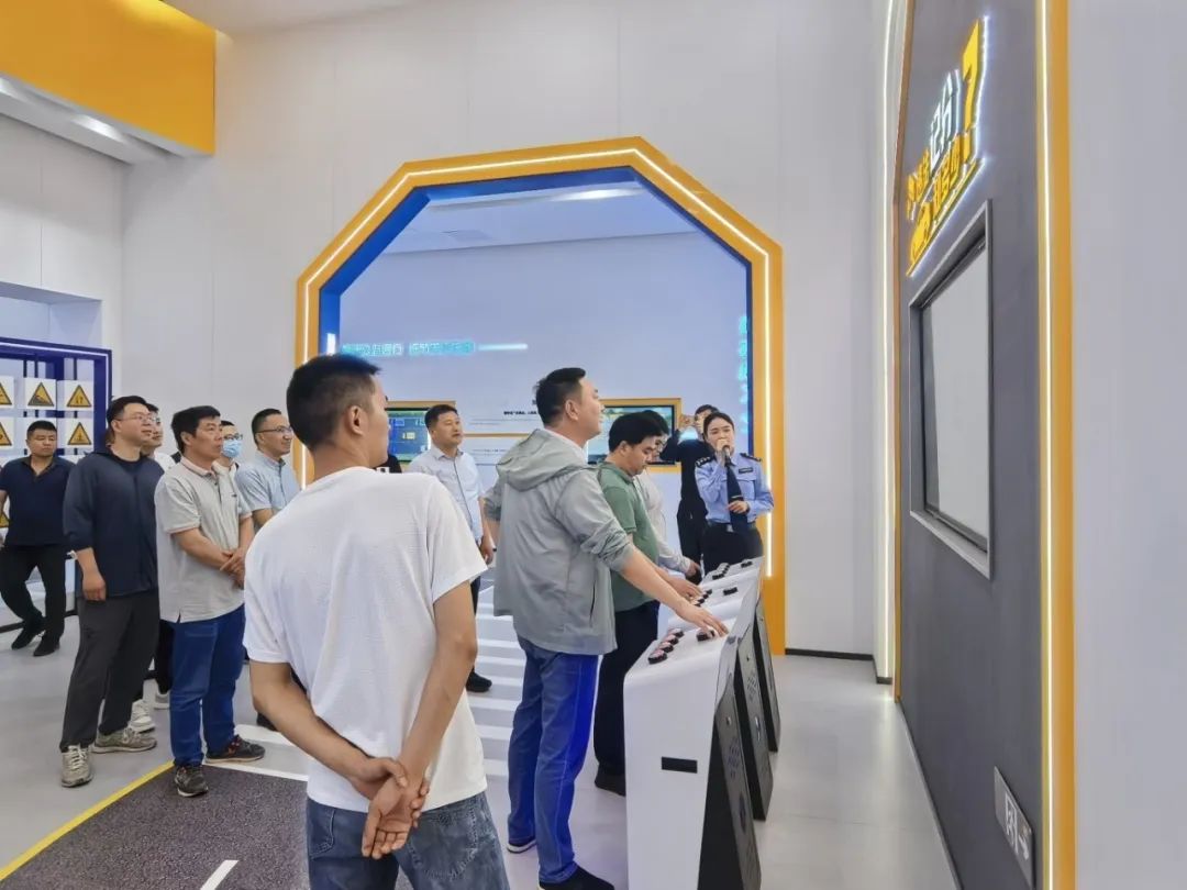 基地围绕道路交通安全主题,共分为六个展厅,先后向大家展示交通安全发展历程、法律法规、行车防范、应急自救等知识。通过视频影音、互动体验、场景再现等科技手段,以浅显易懂的文图、寓意深刻的标识、酷炫的实景模拟体验、有趣的互动问答游戏等形式,向全员传递了丰富的交通安全知识。其中,在第四展厅“敬畏生命,关注细节”现场内,一个由数十个交通事故的惨烈画面组成的立方体,给予全员最直击心灵的视觉体验;大屏循环播放着一个个危险行车瞬间、一个个鲜活案例,警示全员做好自身出行安全“第一责任人”,让交通安全在不知不觉入脑入心。
