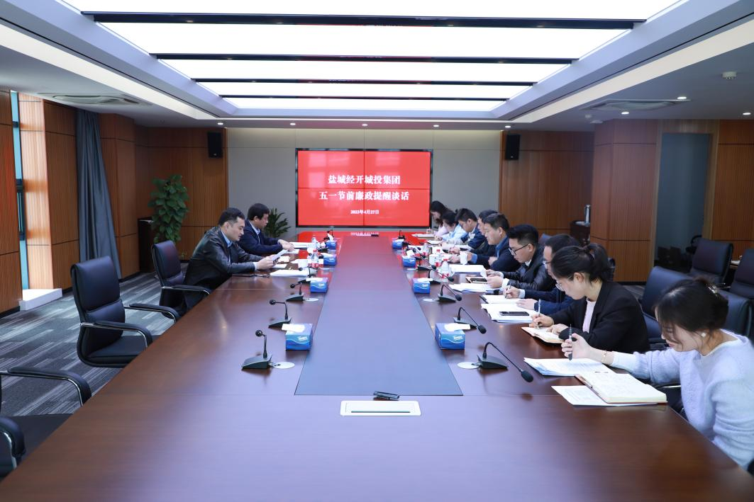 4月27日上午,盐城开云手机平台开展2023年“五一”节前廉政提醒谈话,集团董事长王建旭主持会议并讲话。