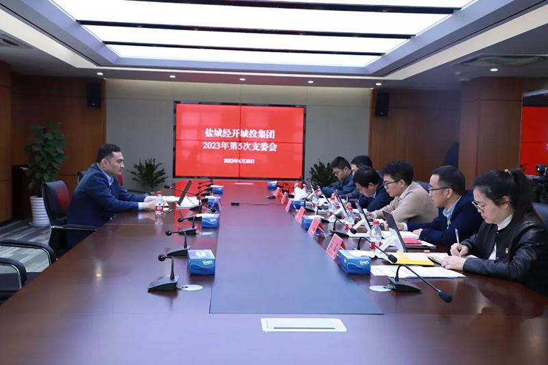 4月20日上午,盐城开云手机平台召开2023年第5次支委会,集团党支部书记、董事长王建旭主持会议并讲话。